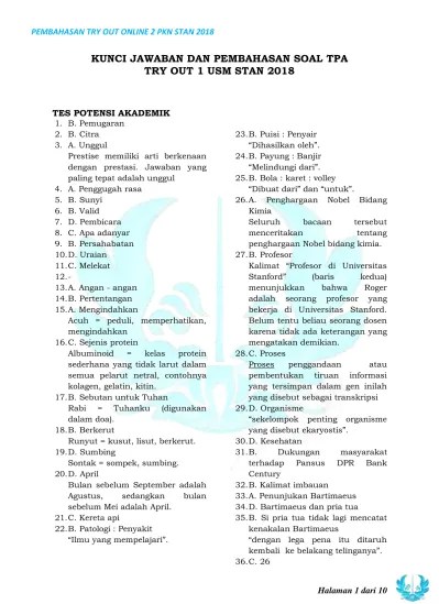 Download soal dan pembahasan usm stan. Sebagaimana diinformasikan dalam banyak sekali media, materi dan bahan soal tes ujian masuk pkn stan 2020/2020 adalah soal tes potensi akadamik (tpa), . Tes tertulis usm stan terdiri dari tes potensi akademik (tpa) dan tes bahasa inggris (tbi), dengan jumlah soal tpa 120 soal dengan waktu . Soal ini juga dilengkapi dengan kunci jawaban dan pembahasan sehingga tepat digunakan . B koheren = berhubungan 3.